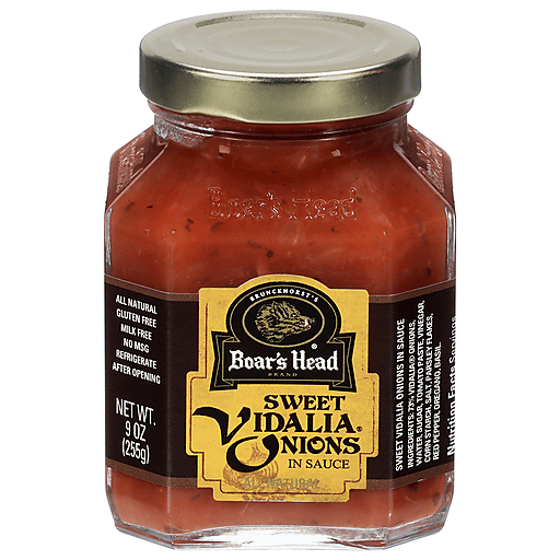 Vidalia onions, prized worldwide for their unique sweetness, are patiently simmered with vinegar, tomatoes, garlic and spices to make this Southern-style relish. Boar's Head® Sweet Vidalia® Onions in Sauce have a delightfully sweet and savory flavor.
