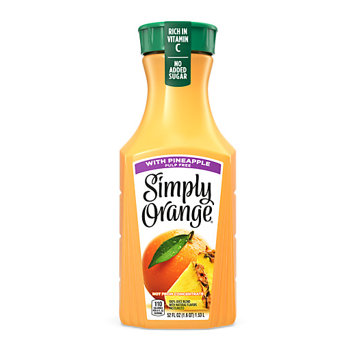 Simple ingredients and the Simply "Fresh Taste Guarantee" make for a refreshing all-natural, non-GMO orange juice blend. Simply Orange with Pineapple is 100% pasteurized fruit juice and an excellent source of vitamin C.